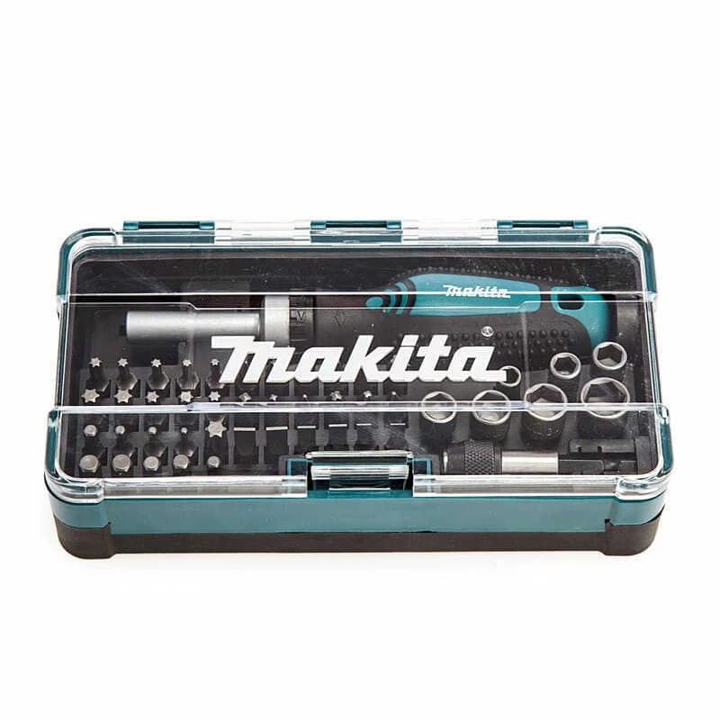 La trousse à outils Makita B-36170 convient pour enfoncer une variété de fixations et contient une poignée à cliquet ainsi qu’une sélection de douilles et d’embouts de tournevis qui conviennent également pour une utilisation avec des outils électriques tels que des perceuses et visseuses.