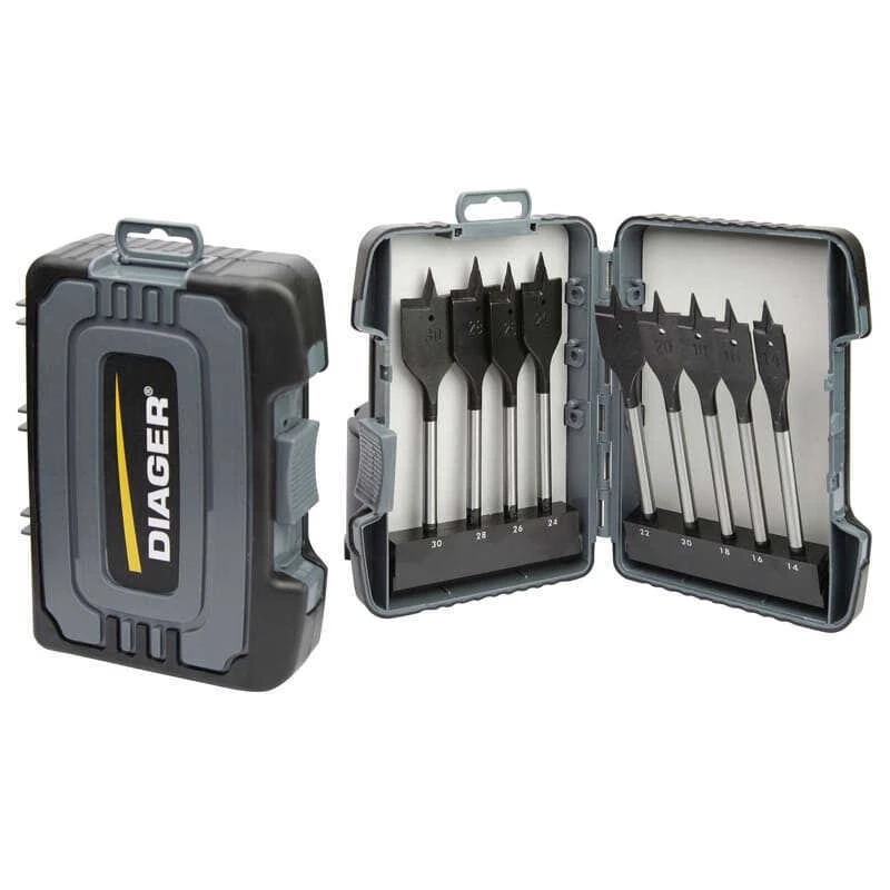 Le coffret de mèches plates en acier de haute résistance pour perçage et façonnage rapide des gros diamètres dans tous types de bois.