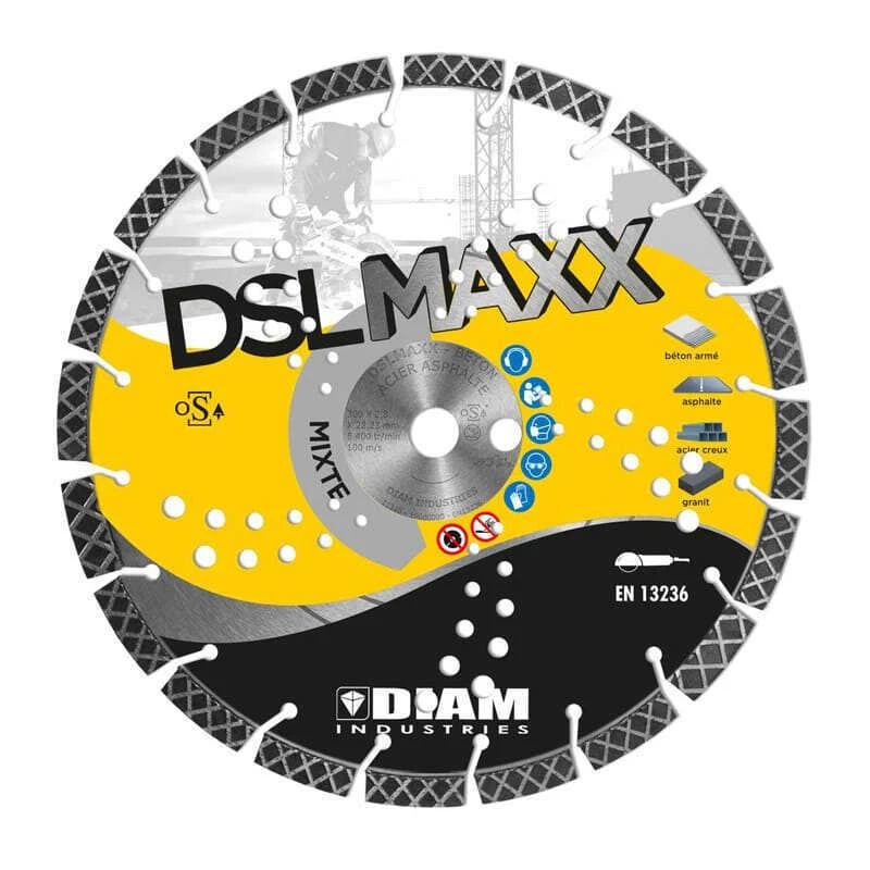 Véritable concentré technologique, le disque diamant DSLMAXX de chez Diam Industries est unique sur le marché. Sa conception innovante avec des segments en croisillons assurent une réduction considérable des frottements latéraux et un meilleur passage dans les matériaux durs.