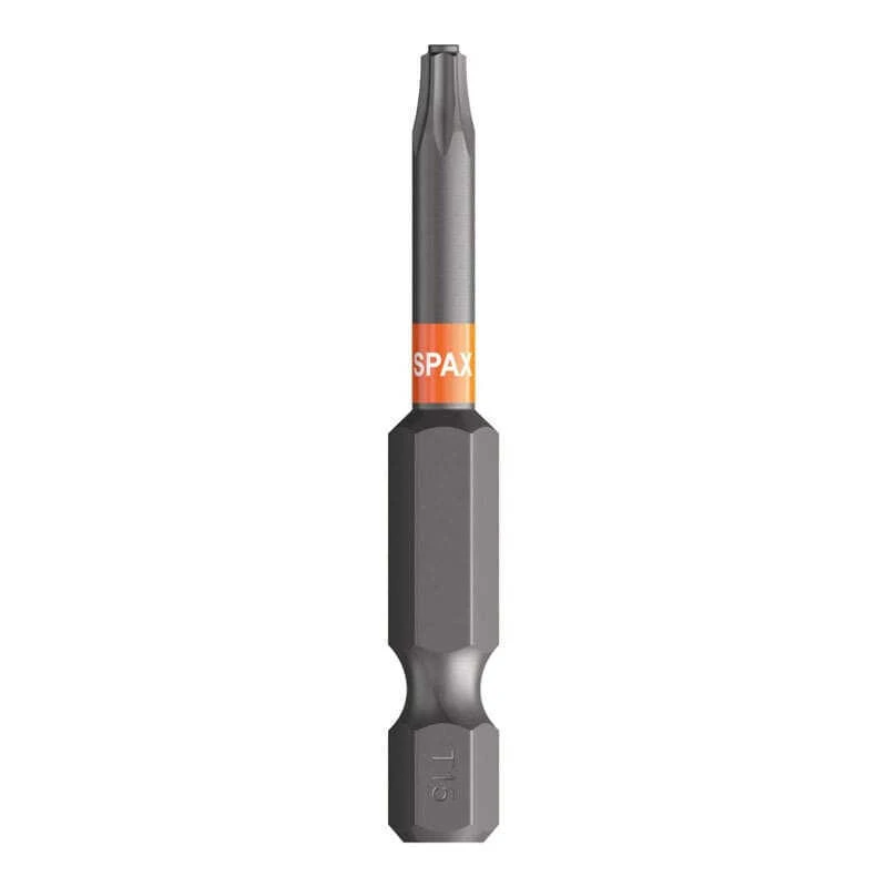 Par ailleurs, le positionnement précis de l’embout se traduit également pas un meilleur guidage, notamment lors des vissages en hauteur. Les embouts SPAX T-STAR plus sont reconnaissables à leur codage couleur orange ; la taille de lame est visible grâce à l’empreinte et l’impression correspondante. La longueur de nos embouts courts SPAX T-STAR plus est de 25 mm. Le système T-STAR plus parfaitement assorti, composé d’une vis et d’un embout, vous offre toujours une expérience de vissage optimale.