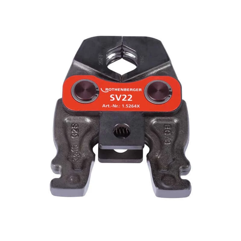 Les mâchoires à sertir compactes SV 14-16-18-22 de Rothenberger sont des outils professionnel de sertissage conçu pour s’adapter aux pinces de sertissage électriques et hydrauliques de la gamme ROMAX ou toutes autres presse avec une force de poussée axiale constante de 19 kN ou 32 kN. Ces accessoires sont conçus pour sertir des raccords de diamètre 14-16-18-22 mm.