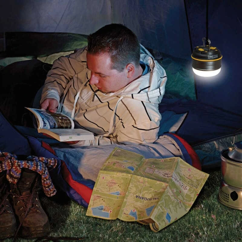 - Lampe de camping LED polyvalente avec 3 modes d’éclairage : 100%, 50% et 10% et option SOS