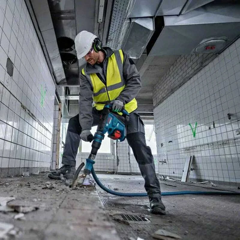 Le GBH 18V-40 C est équipé d’un mandrin interchangeable SDS-Max pour une fixation rapide et sécurisée des forets et burins, et d’un système de contrôle de la vitesse pour une adaptation optimale à chaque tâche. Il est également équipé d’un éclairage LED intégré afin de garder la zone de travail bien visible en toutes circonstances.