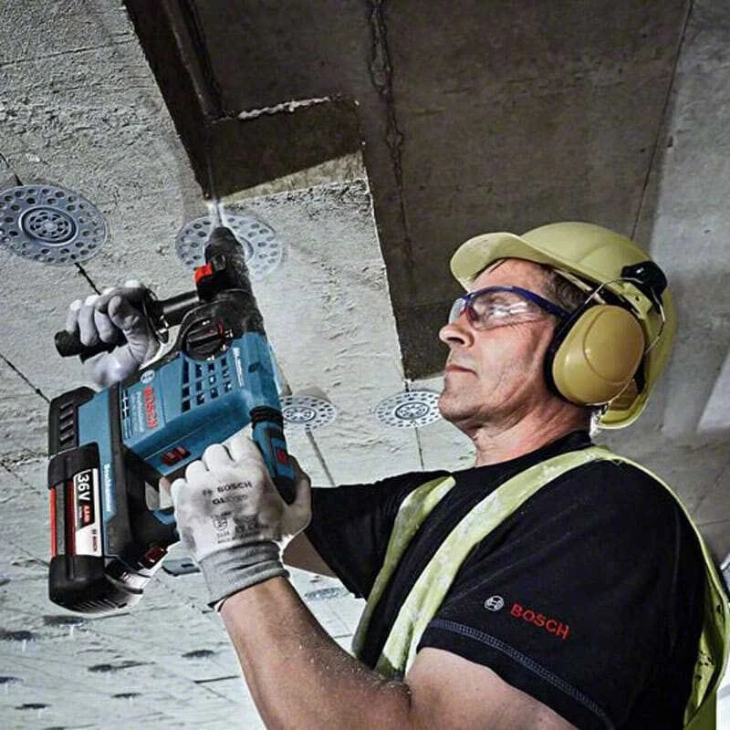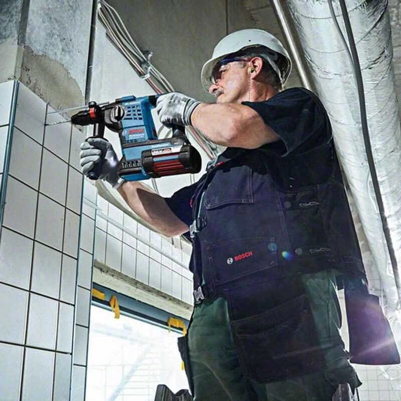 Le GBH 18V-36 VF-LI allie compacité extrême et puissance élevée pour les applications exigeantes dans le béton. Avec un poids de seulement 6,1 kg, il est nettement plus compact et plus léger que n’importe quel autre perforateur SDS max sans-fil du marché.