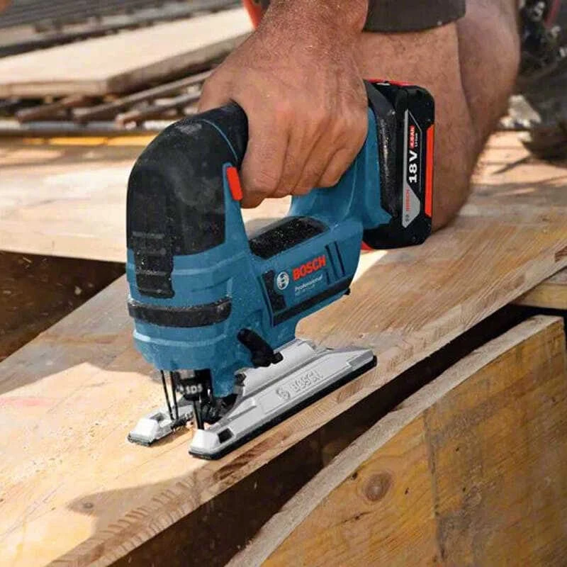 Cette scie sauteuse sans-fil est idéale pour les coupes courbes et transversales dans le bois massif, les panneaux agglomérés, les bois composites et les matériaux durs ou épais. Elle est compatible avec le système d’aspiration de poussières Click & Clean Bosch et d’autres aspirateurs Bosch ainsi qu’avec toutes les batteries et tous les chargeurs 18 V de Bosch Professional (Professional 18V System) ainsi qu’avec les rails de guidage Bosch moyennant l’utilisation d’un adaptateur.