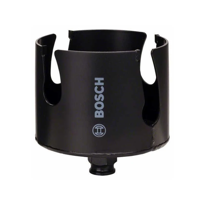 Dents robustes au carbure pour une progression de travail extrêmement rapide et une grande longévité. Grandes encoches déjection de forme spéciale pour un perçage particulièrement rapide. Adaptateur Power Change pour un retrait facile de la carotte et un changement rapide de la scie-trépan. La qualité de coupe dépend de la vitesse de rotation. 89 mm, 3 1/2 pouces.