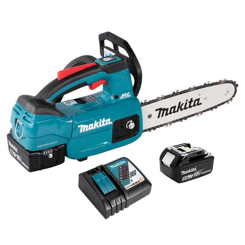 La tronçonneuse d’élagage Makita DUC254 est idéale pour la coupe de branches épaisses grâce à son mode dopage de couple. Le débit de la pompe à huile est facilement réglable pour une meilleure gestion, et pour un grand confort, une fenêtre sur le niveau d’huile est présente. Pour une grande sécurité d’utilisation, un frein de chaîne mécanique, une coupure électrique du moteur et le démarrage progressif sont présents sur la tronçonneuse.